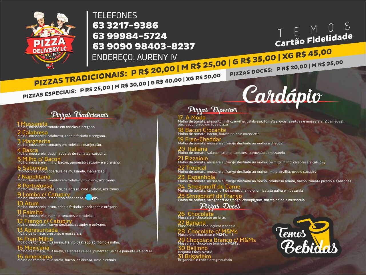 A Pizza Delivery LC trabalha apenas com entregas, de segunda à Sábado, das 18h30 às 23h.