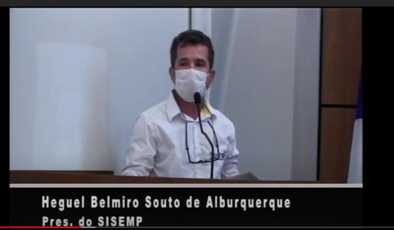 O presidente do Sisemp, Heguel Alququerque, participou da Audiência pública de prestação de contas da Secretaria Municipal de Saúde, nesta terça-feira, 25, na Câmara Municipal de Palmas. Na ocasião Albuquerque, que falou à tribuna, cobrou o atendimento das diversas demandas pendentes e maior cuidado com a saúde dos trabalhadores que estão na linha de frente do combate à pandemia por Covid 19.